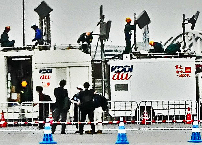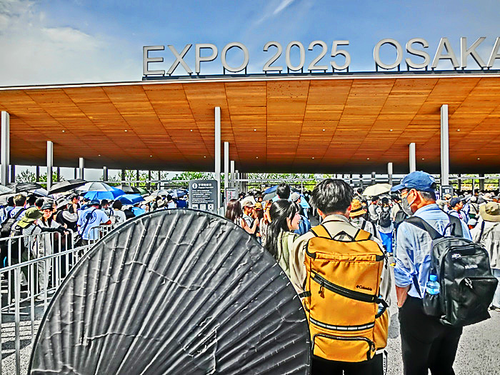 約90分後には、大阪市営地下鉄・中央線の「夢洲」(ゆめしま)駅を出て、万博会場の入場ゲート前に、到着していた私・・・開幕初日に、10数万人の入場者が一斉にインターネットを使い、回線が詰まって不通になるという事件が発生したので、各社の業者さんが集まって、ネット環境の機材を緊急増強中ですよ。この業界は、つながらなかったらアウトであり、重役の方々が、テレビカメラの前で頭を下げることになりますからねぇ・・・業者さんたち、みんなのために、ご苦労さまです!!
