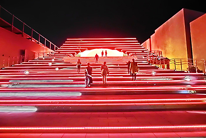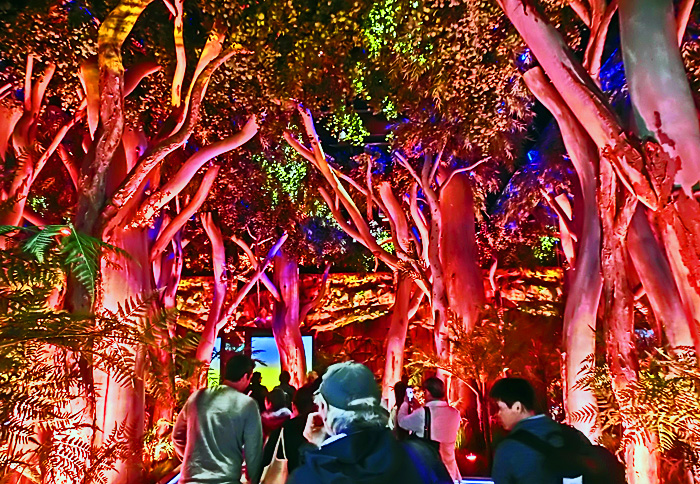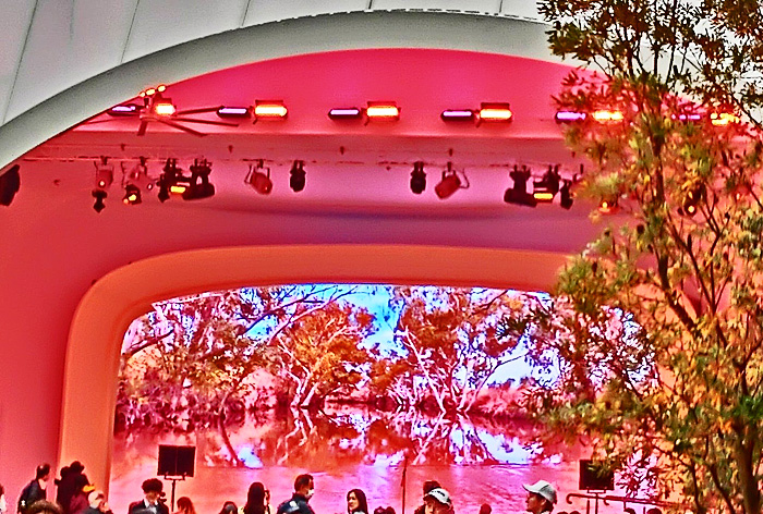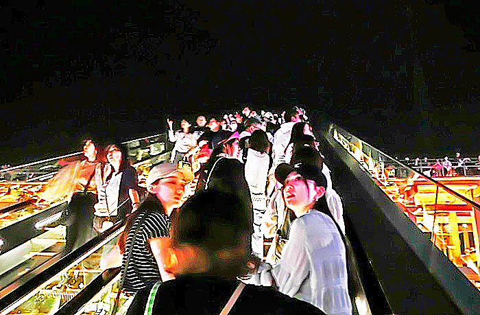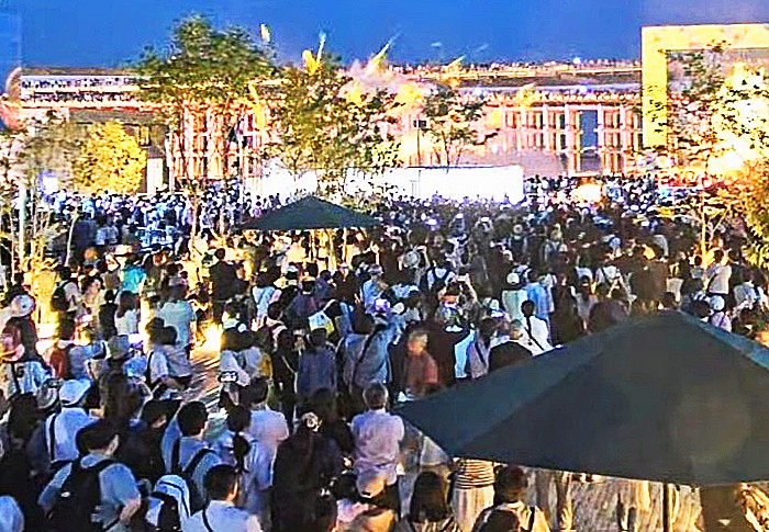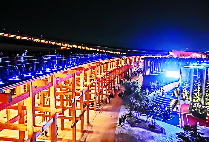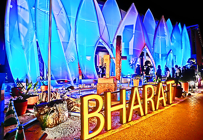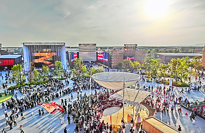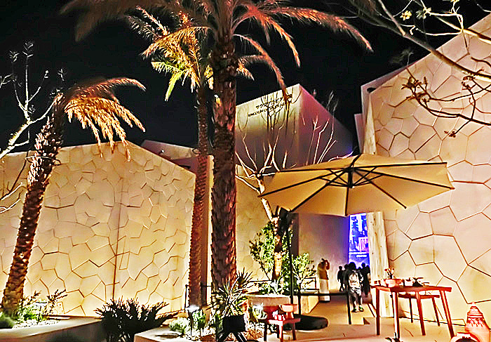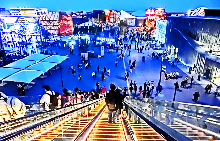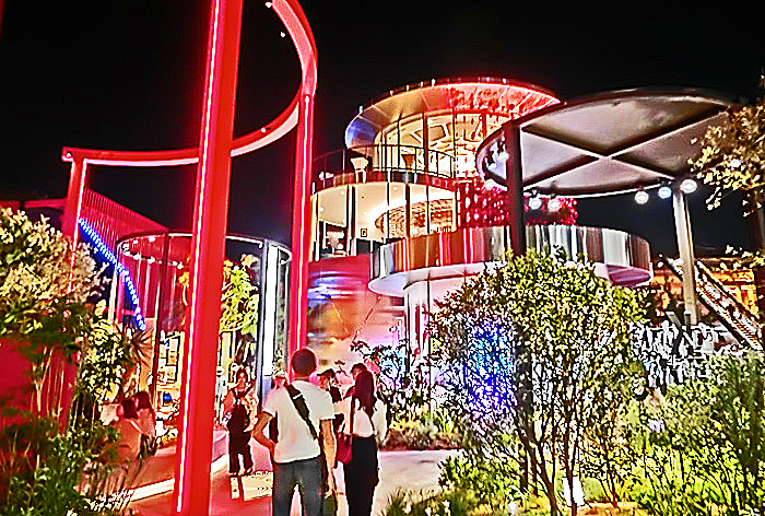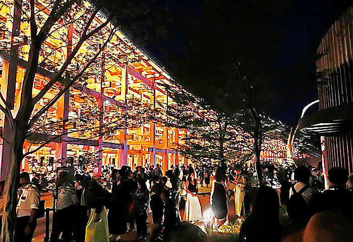さて、格式高い英国館のパブで、優雅に「マンゴージュース」を飲んでから外に出ると、そろそろ日が暮れ始めて、会場内がキラキラと輝いてきましたよ・・・若者たちが、うっとりした表情で、写真を撮りまくっていますね。