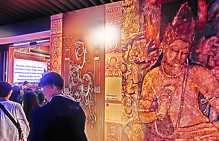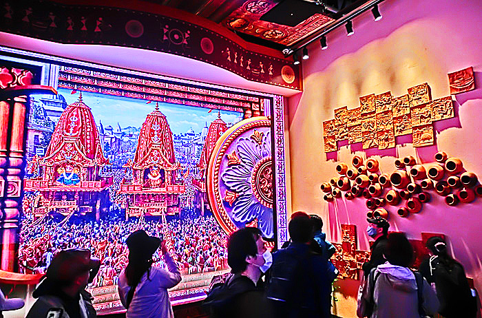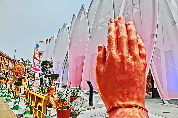 ※ 注:右側に大きく写っているのは、レンズに入り込んでしまった私の手ではなく、インド館の外側に設置されている、祈りの手(?)の巨大な置物ですよ。私の手は、もうちょっと若々しいですからね(笑)。