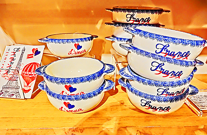 ほら、見てくださいよ、フランスのお店や家庭で親しまれている、巨大な「カフェオレ・ボウル」・・・そりゃもう、万博の売店なんですから、こうでなくちゃね!!
