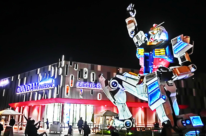 以上のように、懸命な「下見」に徹しているうちに(笑)、残念ながら8時半を過ぎてしまい、泣く泣く会場を後にする私・・・実物大の「ガンダム」を横目に見ながら、予約済みのバスが出る「西ゲート」に向かいます。