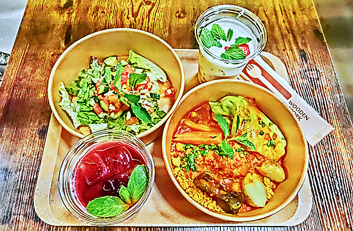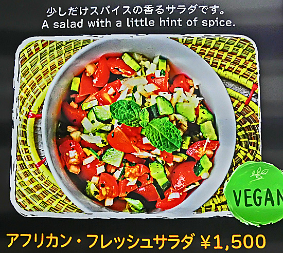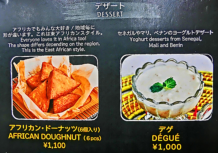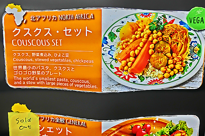やがて、熟慮の末に私が選んだのは、これら・・・「アフリカン・フレッシュサラダ」「クスクス・セット」「デゲ」「ビサップ」という、豪華4点の組み合わせでした。失礼ながら、意外なことに、どれも本当に美味しくて、「アフリカっていいぞ!!」と、想定外の大満足でしたよ。特に、世界最小のパスタとして有名な、「クスクス」にハマリました!!