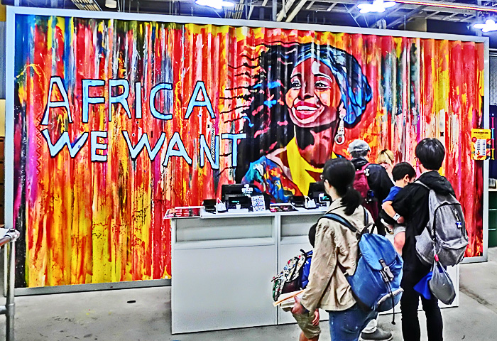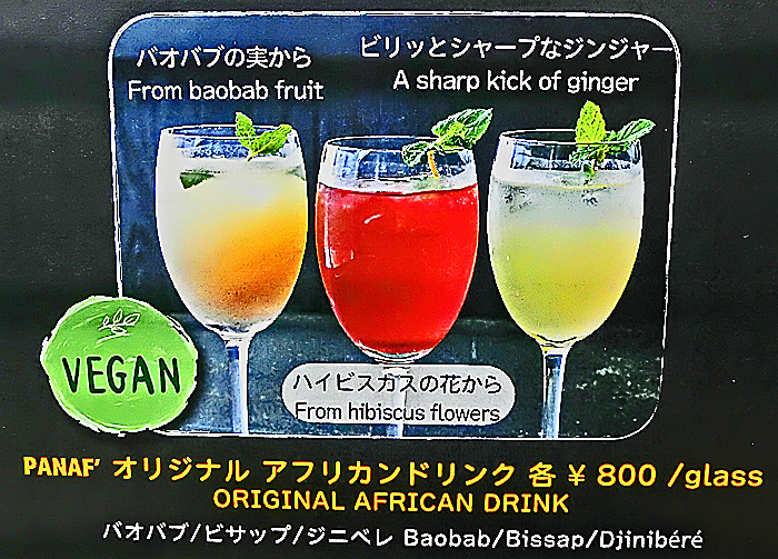 次に、私が調査に向かったのは、ツアー本番でも訪れるつもりマンマンの、アフリカン食堂「AFRICA WE WANT」。いいですねぇ、この背景画・・・店内に足を踏み入れた瞬間から、ここはもう、間違いなく「アフリカ」ですよ!!