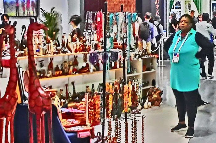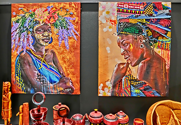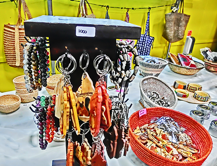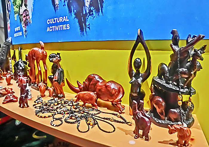 店内には、見るからにアフリカンなお土産の数々が・・・はるばる遠いアフリカから運ばれてきて、わずか1000円とは安すぎますが、きっと、現地の物価が非常に安いため、仕入価格が100円、輸送費が100円として、残りの800円で、充分な儲けが出るのでしょうね。
