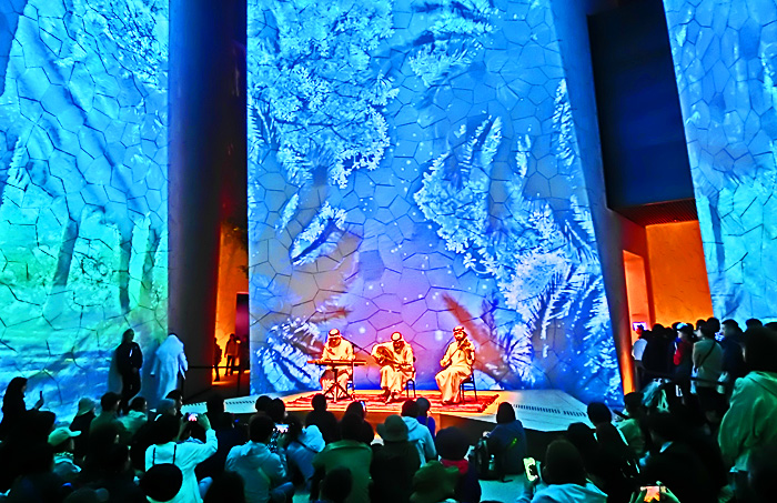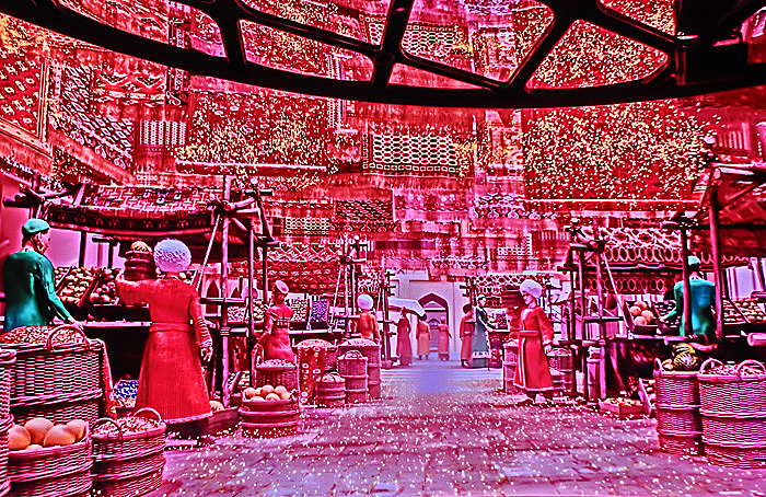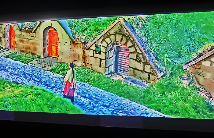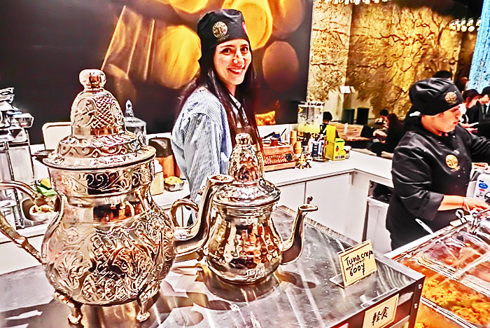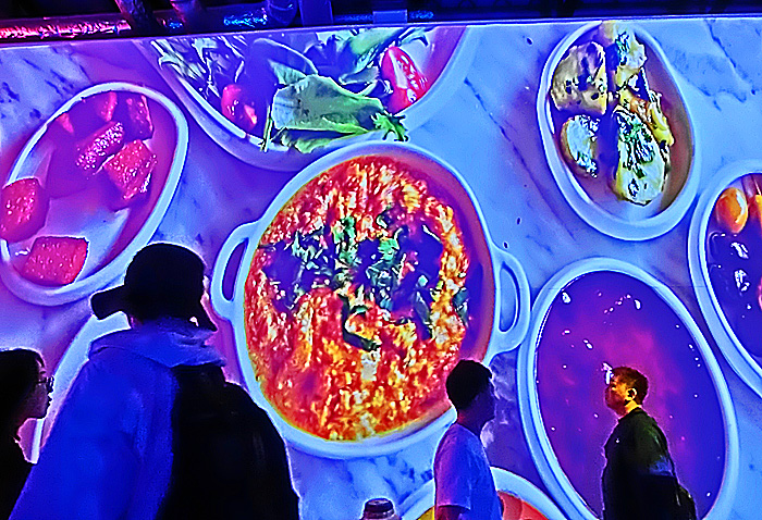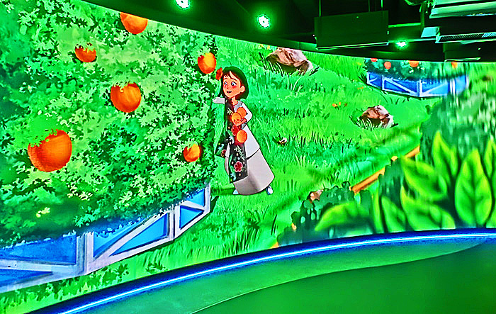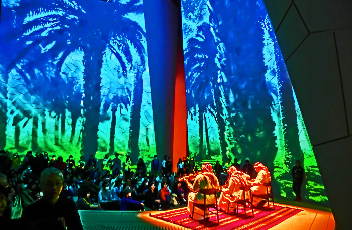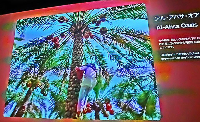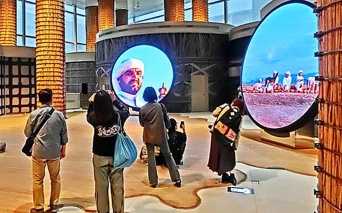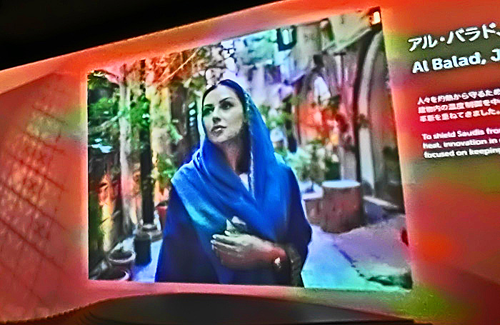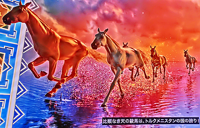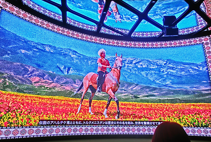 数分の待ち時間で、館内に入ると、ヨーロッパとアジアを結ぶ「トルコ」の文化を、巨大な画面で紹介中・・・写真の映像は、世界三大料理の1つである、トルコ料理の紹介ですよ。