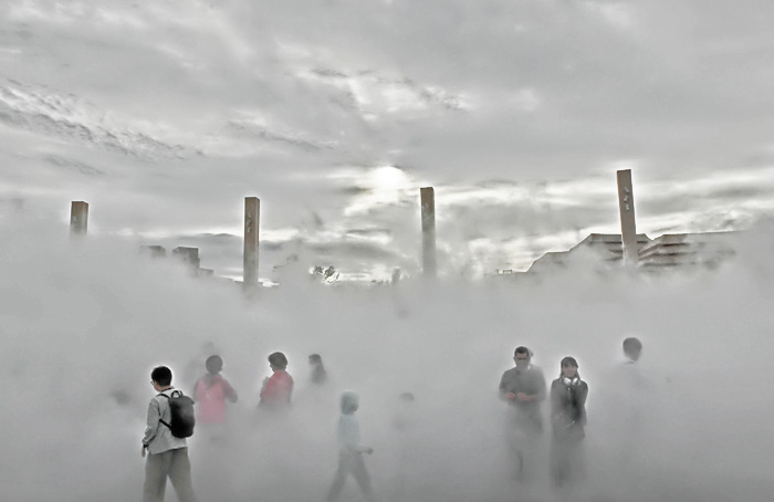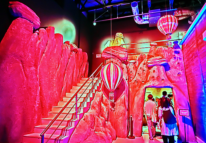 さて、その後の我々、研究者4人組は・・・場内を歩いているうちに、突然、地面から噴出された水蒸気に、全身を包まれてビックリ仰天したり・・・(このように、場内各所において、さまざまな楽しい仕掛けが、発動しているんですよ)