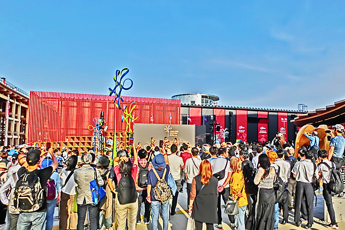 本日の目的は「下見」ですから、色々と調べ物をしながら、全体を歩き回ってみましょうか・・・これ以降、写真の中にヒントがある場合には、何もコメントしませんので、どの国のパビリオン(展示館)なのかを、どうぞ当ててみてください!!(写真内にヒントが無い場合には、国名をお教えしますからご心配なく)