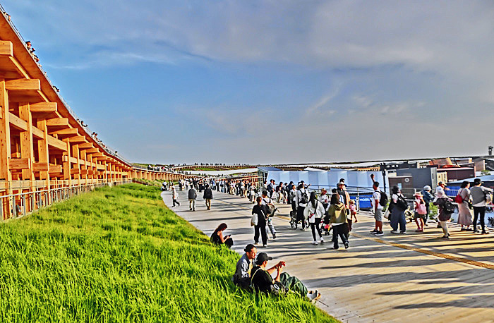 なお、事前に政治的目的で流布されていた、悪意に満ちた低評価とは全く異なり、休憩場所、ベンチ、トイレが、各所に大量に設置されています。少なくとも平日の夕方以降は、座って休む場所には全く困りませんし、人の少ないトイレも数多くて、(女性でも)ほとんど並んでいませんでした。