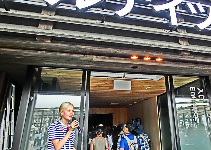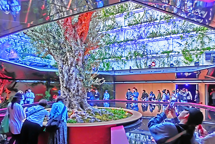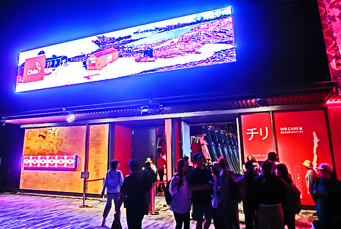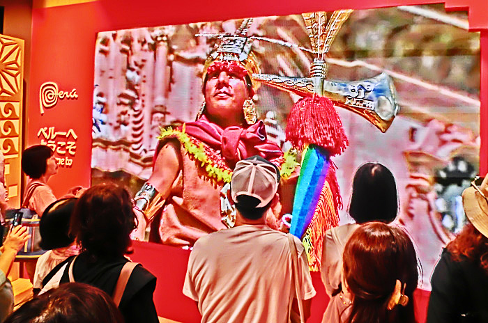 ところが、たまたま通りかかった瞬間に、案内係の女の子が、「今なら、すいていますよ〜!!」と声をかけてくれたので、「待ち時間は?」と尋ねてみると、なんと「20分くらい」とのこと!!(ちょうど始まる噴水ショーを見ようとして、大勢のお客様が海岸に向かうため、パビリオンの入館待ちが最短になる時間帯なのだそうですよ)