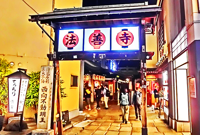 こ、これは・・・外国人さんたちが、恐る恐る、「???」と、のぞき込んでは去っていますが・・・地図で調べてみると、なんと、「よしもと館」でした〜!!