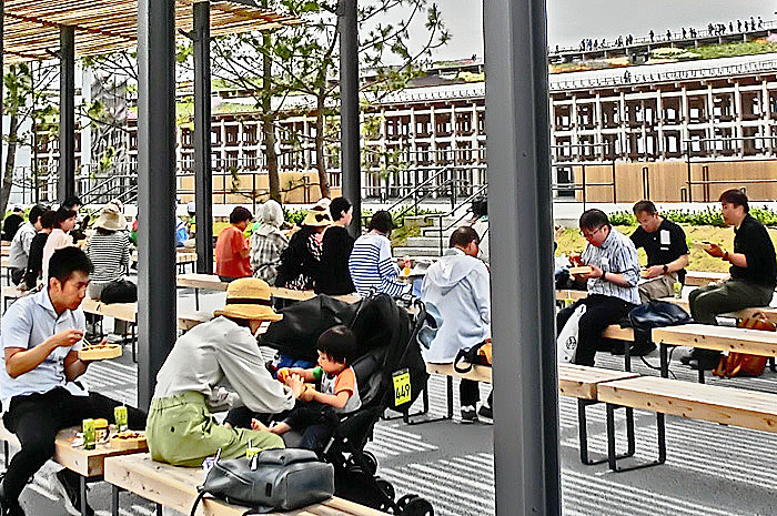 飲食店も多数あり、一部の有名パビリオンの有名店を除けば、(夕食時でも)座席に余裕がある店が多いため、「どこでも良いから何か食べたい」と考えれば、ぜんぜん困りません(笑)。飲料水の無料提供機(マイボトルを持参すれば給水可能)や、各種飲料の自動販売機も、各所に大量に設置されておりました。スタッフの方々のサービスも素晴らしくて、何でも親切に対応してくださいましたよ。今後は、さらなる改良と熟練が進んで、様々な要素が、ますますレベルアップしていくことでしょう。