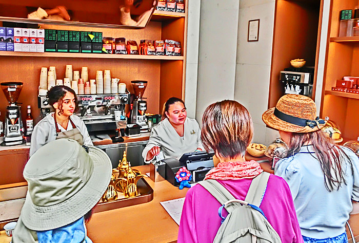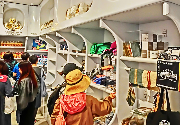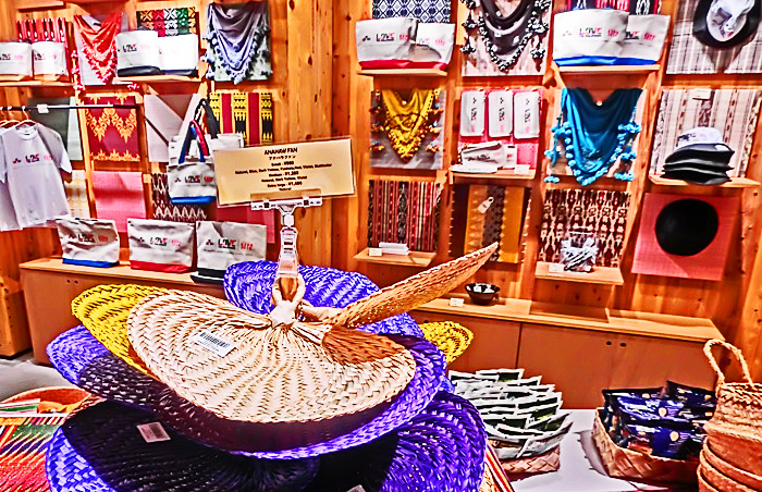 このパビリオンでも、最後に登場するのは、例によって、お土産屋さん・・・暑がりの私は、タイ風の素敵なウチワを発見し、思わず購入しかけましたが、7000円近い値段に目が向き、あわてて中止しましたよ(笑)。(店員さんによれば、「あれは実際に使うものではなく、飾るための民芸品なので高価なんです」とのこと)