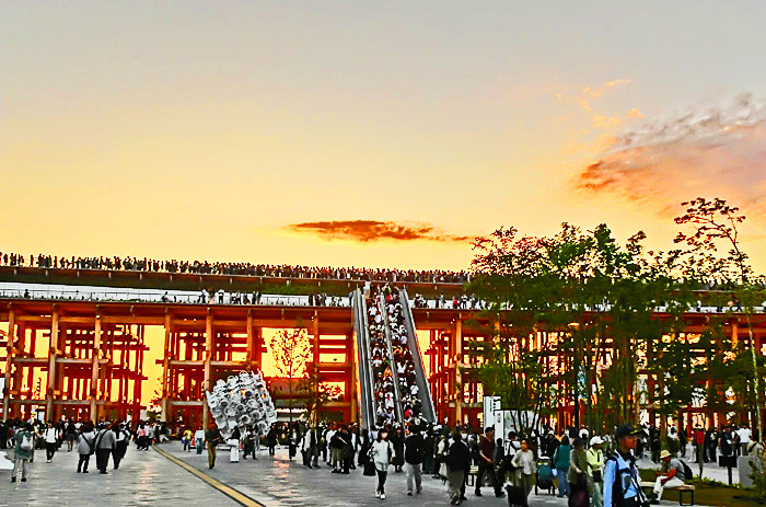 ・・・という展開により、結果的に万博を堪能し、大満足で出口に到着した我々を待っていたのは、大勢のスタッフさん&警備員さんたちが並んで、「ありがとうございました〜!!」「どうぞお気をつけて!!」「またおいでくださいね〜!!」などと、満面の笑顔で手を振る姿でしたよ。