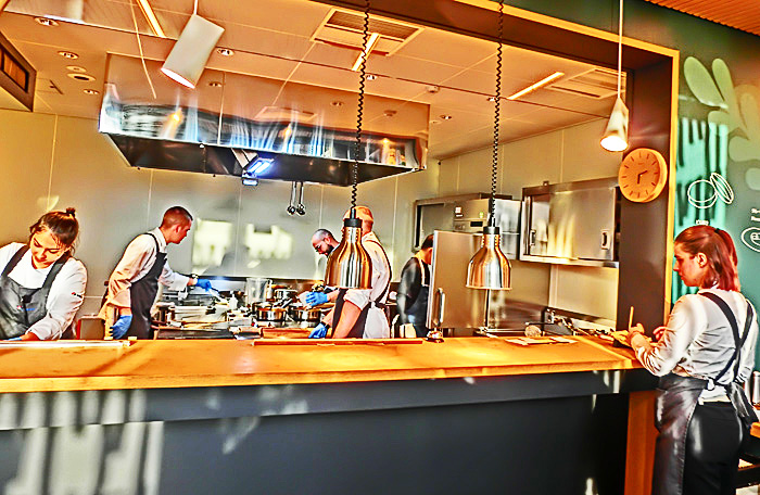 ほら、バーカウンターでは、金髪が美しい英国人のお兄さんが、カクテルを制作中・・・どのパビリオンの飲食店でも、その国の人々が働いていらっしゃる様子でした。世界各国の人々と、気軽にお話できるのも、万博の魅力のひとつ!!(たいてい、日本語を話してくださるので、ご安心を)