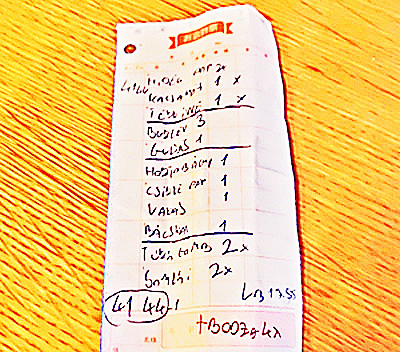 いざ、注文用紙を手に、「なにやら、読めないハンガリー語が書いてあるなぁ」と、支払いデスクに向かってみると・・・