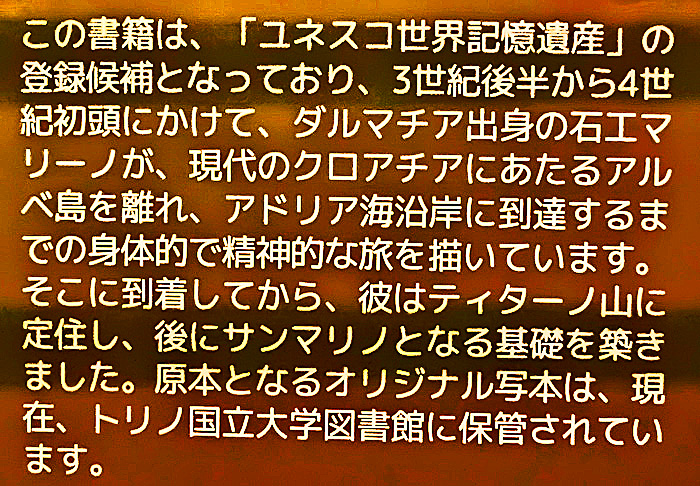オシャレな「サンマリノ館」では、3世紀後半に書かれた、貴重すぎる旅行記の精巧な写本を、真剣に見つめながら感嘆したり・・・(私にとっては、文筆家の大先輩ですからね)