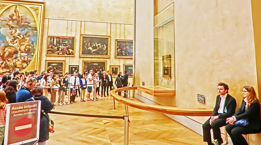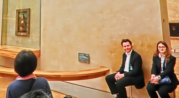 「モナリザ」の横で警備する係員さんたちは、