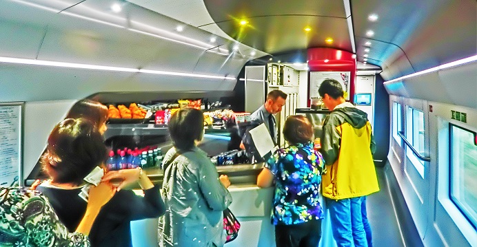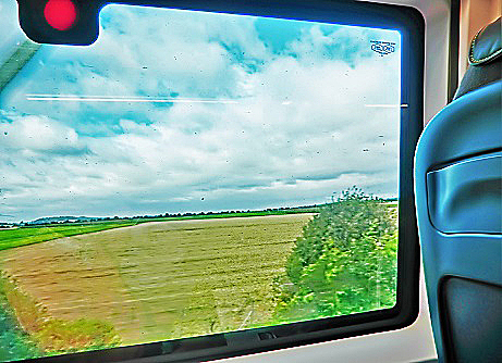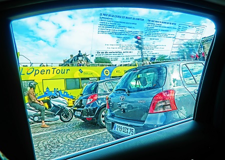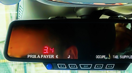 なんと、バックミラーの左下部に、料金が、ユーロで表示されています。