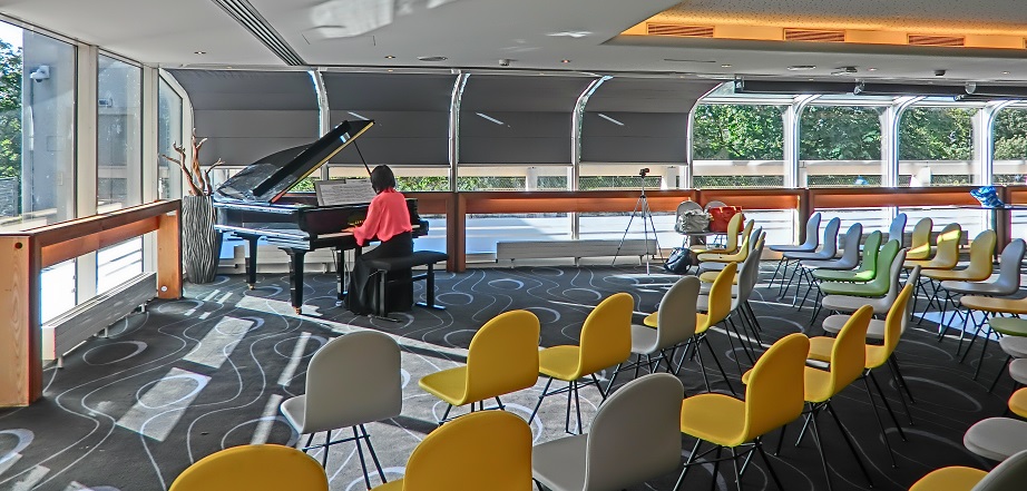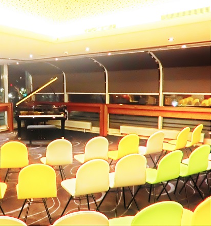 なんと、2階に位置するリサイタル会場の大きな窓からは、