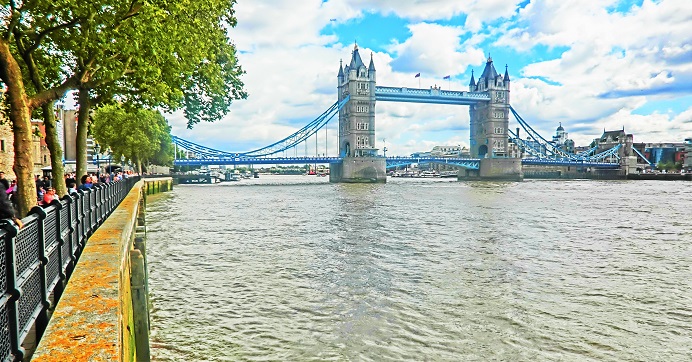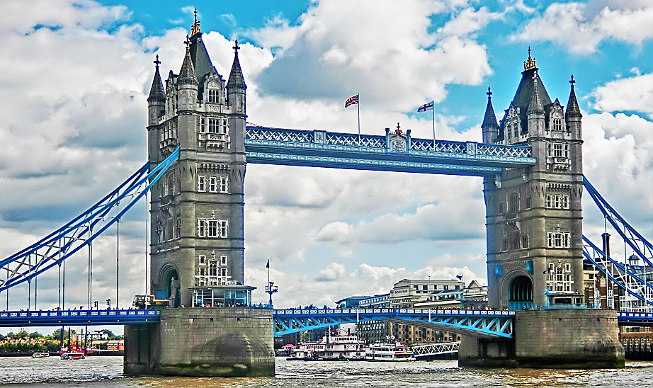 テームズ川を、大きな船が通るたびに、橋が上がる仕組みです。