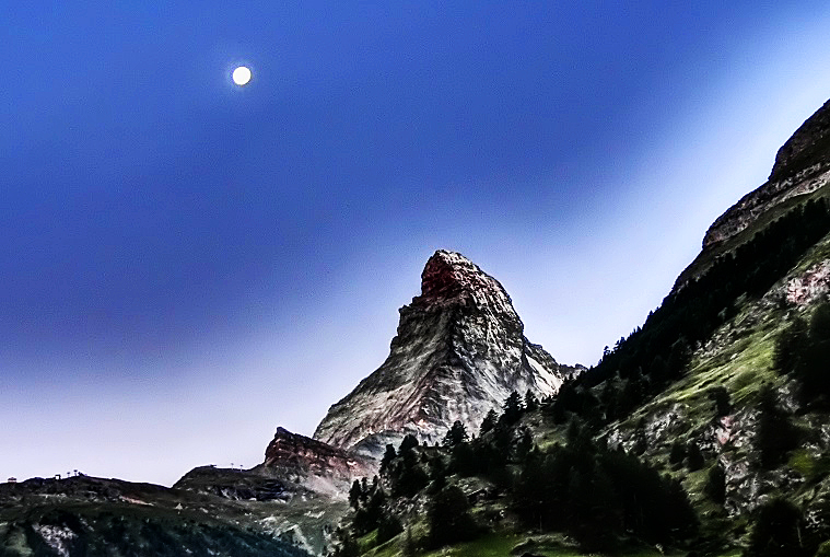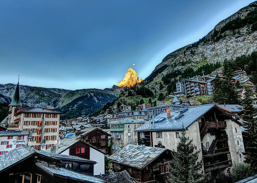 標高の高いマッターホルンにだけ、朝日が当たって・・・