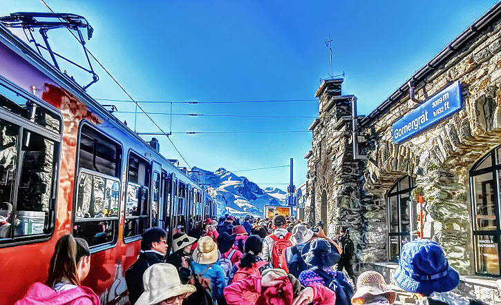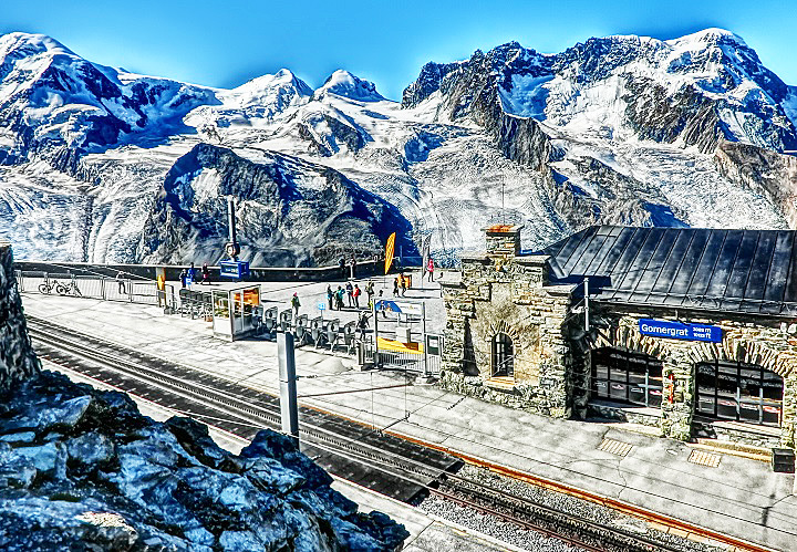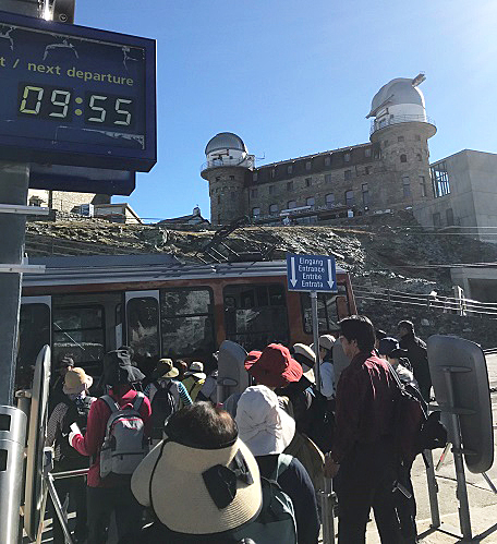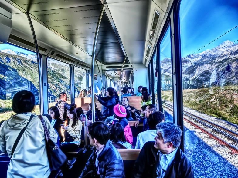 標高3089m(富士山8合目相当)のゴルナーグラート駅まで、