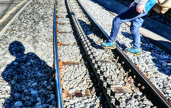 みんな、喜色満面で、登山鉄道の駅に向かいます。