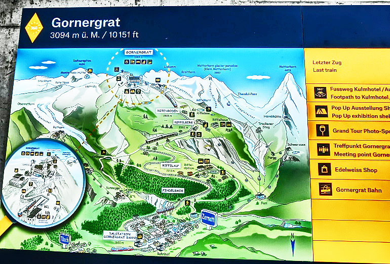 ツェルマット、マッターホルン、ゴルナーグラートの位置関係は、