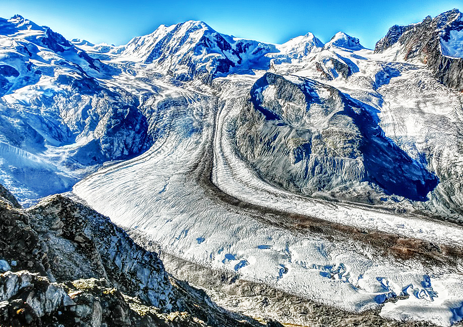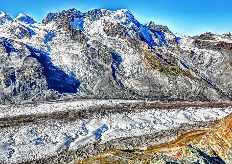 これが、有名な「ゴルナー氷河」の流れ・・・