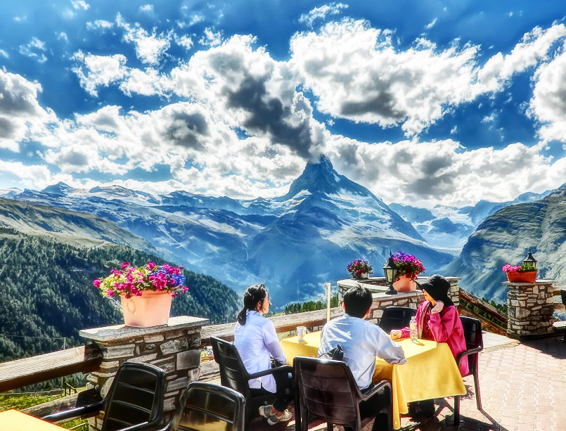 「ゴルナーグラート登山鉄道から眺めるマッターホルン」