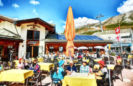 ゴルナーグラート展望台のカフェは、まだ営業前のようですね。