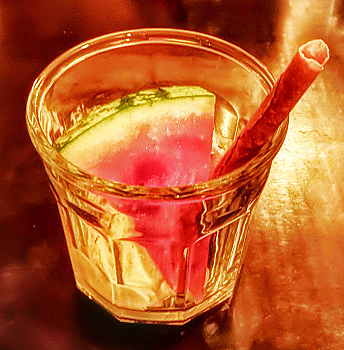 珍しい取り合わせの、「アイスクリームのスイカ添え」。