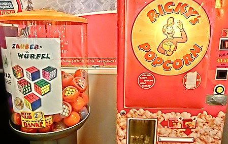 昔懐かしい、「ルービック・キューブ」の自販機も。