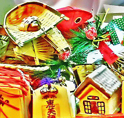 私ならば・・・「千両箱」「大判小判」「金蔵」「(打ち出の)小槌」でしょうか・・・こう並べてみると、見た目の美しさよりも、ひたすら、実利(現金)優先主義ですねぇ(笑)。(オマケとして、赤くて可愛い「鯛」も、ぶら下げたいところですが・・・)