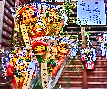 つい、「あれも、これも」と、枝が折れてしまうほど、たくさん結んでしまいそうですが・・・かなりの奉納金を献じても、「吉兆笹」&「縁起物」のダブル効果により、百万倍の収益金として返ってくるならば、経営者としては安いものなのでしょうね(笑)。