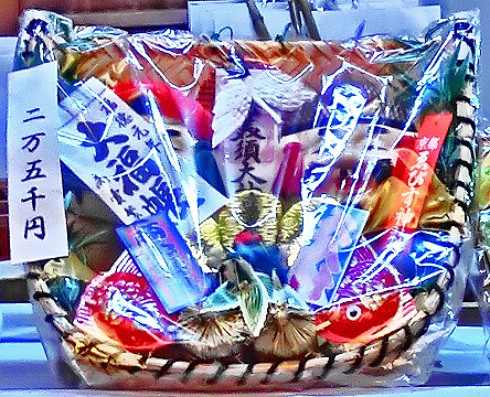ちなみに、「縁起物」を詳しく観察すると、「千両箱」、「大判小判」、「金蔵」(かなぐら)、「大宝」、「福俵」、「福輪」、「福鯛」、「宝来」(ほうらい)、「駒札」、「福熊手」、「福箕」(ふくみの)、「小槌」(こづち)、「宝船」、「福鈴」など、選び放題!!