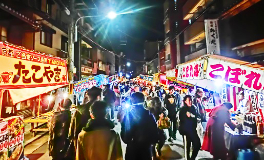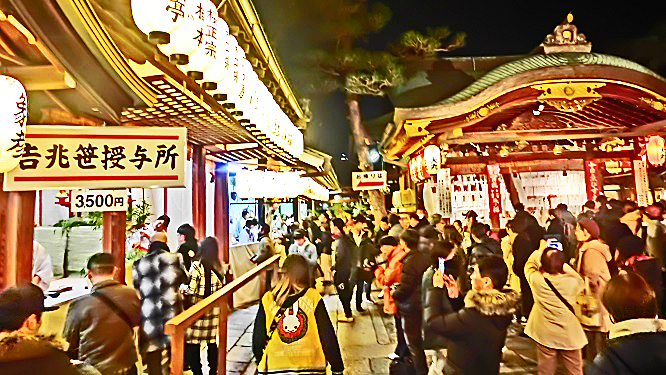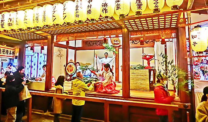京都の風物詩として知られる、新年の恒例行事であり、8日から始まって、10日の本祭を経て11日まで開かれた後、12日には「のこり福」も・・・(「のこり福」とは、うっかりお詣りを忘れた人々が、あわてて駆け込んでもギリギリ間に合うように、オマケで追加される最終日のこと)