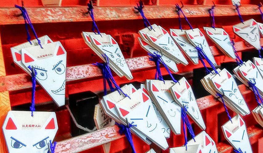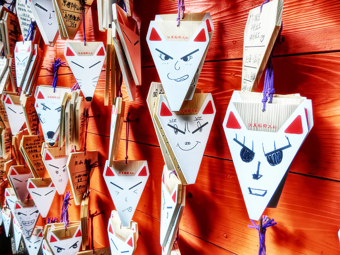 やがて、「奥社奉拝所」に到着すると、「きつね」の顔の「絵馬」・・・じゃなかった、「絵狐」が、たくさん奉納されていますよ。(元は眉毛だけが書いてあるので、あとは各自で、何でも自由に書き込めるのです)
