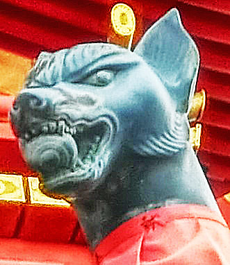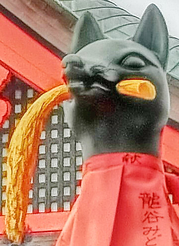 ほかの神社ならば、狛犬(こまいぬ)が出迎えてくれるのですが・・・