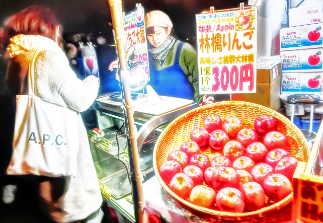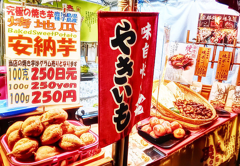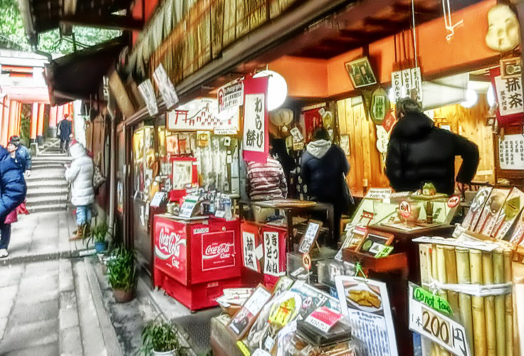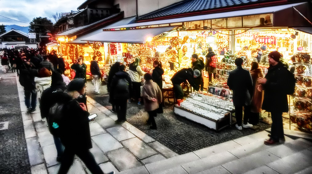 店頭には、あれやこれやと、人目を引く品々が所狭しと並び、我々を誘っています。客の多くは外国人の方々なので、皆さん、不思議なものを見る目つきで、楽しそうに、興味シンシン。