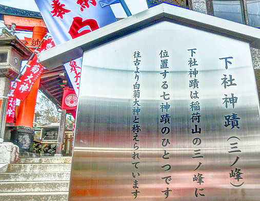 足の重さがピークになった頃、ようやく到着したのが、「三ノ峰」に鎮座する、「白菊大神」。この神社を「下之社」(しものやしろ)として、これから「中之社」を経て、「上之社」へと順に登っていく、最後の登頂コースに入ります。