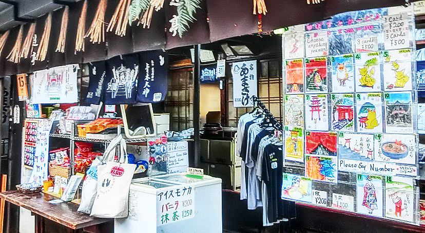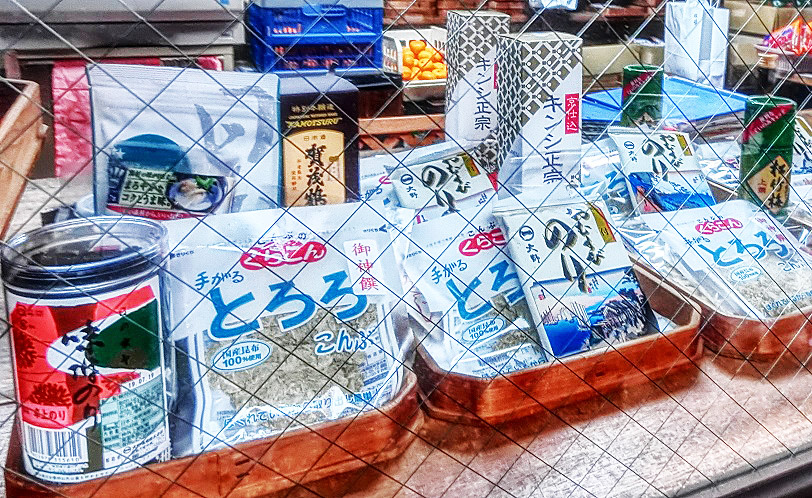 青木大神に参詣する際にお供えする、神様の好物3点セット(お酒、海苔、とろろ昆布)が、売られています。(これらを目の前にお供えして参詣し、お祈りした後は、自宅に持ち帰るのがマナーとのこと)