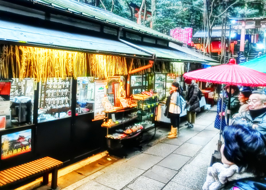 ようやく下山すると、明かりが灯ったお店の中で、掘り出し物を求める人々が、楽しそうに物色していますよ。