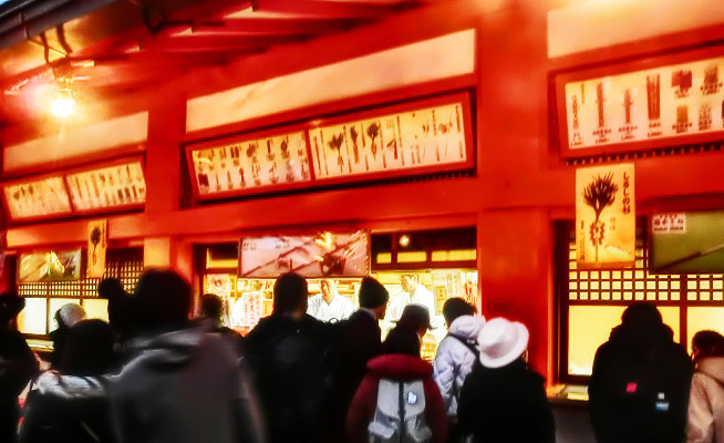 お店の向かいに立つ、お守りの売店・・・じゃなかった、「規定額の志納金を奉納すればお守りを授与していただける窓口」(笑)にも、人だかりが・・・