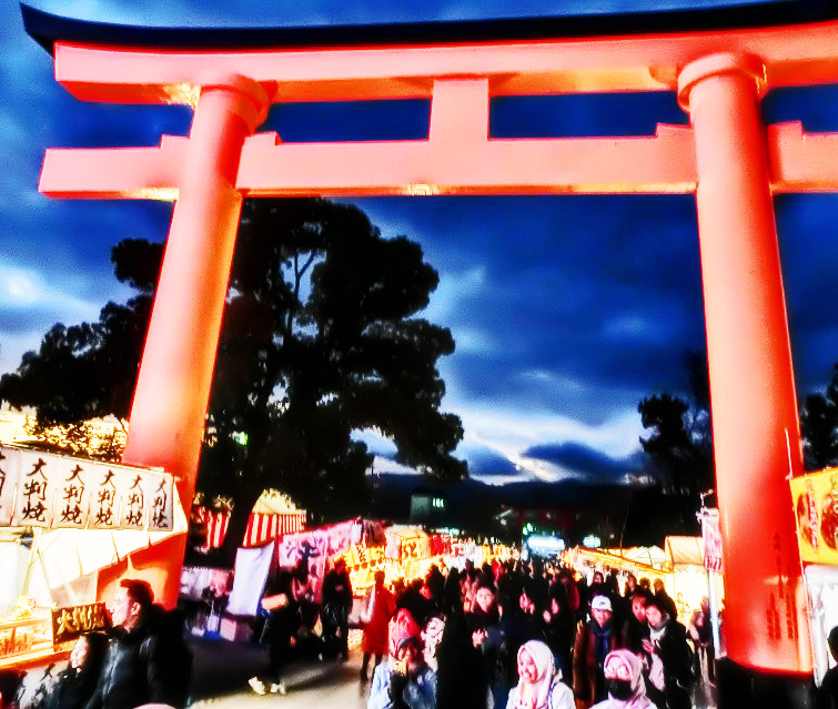 年越しの瞬間が、あと10分に迫って、門前に陣取る大群衆も、ますます膨(ふく)れ上がってきましたよ。