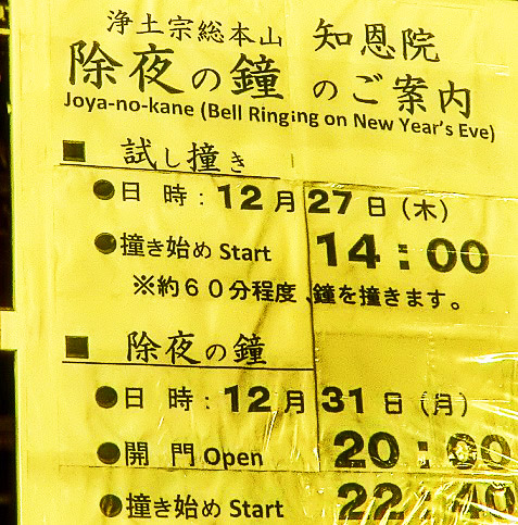 整理係の若いお坊さんが、大きな声で、「除夜の鐘に並ぶ列は、もう締め切りましたので、これ以上は並ぶことができません!!」と、押し寄せる群衆に向かって叫んでいますが・・・「ええ〜っ!?」「まだいいでしょ?」「このために来たのに!」などと、押し問答に。