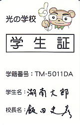 * 入学試験合格者には、飯田が直筆で学生さんのお名前&飯田の名前を書き入れた、特製の「学生証」を(経費は飯田の負担で)お送りいたしますので、「光の学校」の正式な学生であることを大いに誇りに思いながら、今生の試練に立ち向かう心の支えにしていただけますよう願っています。