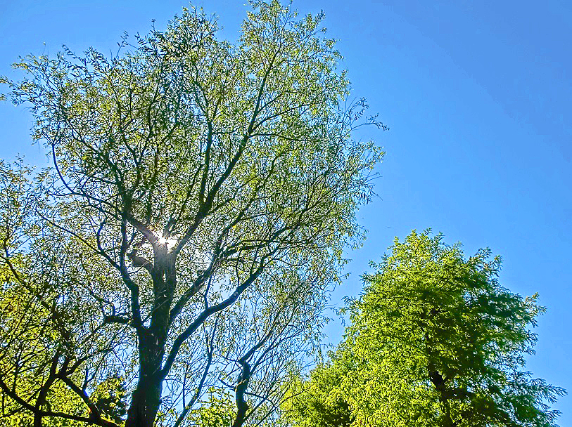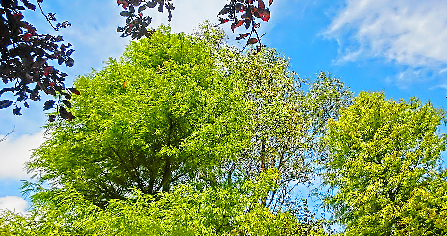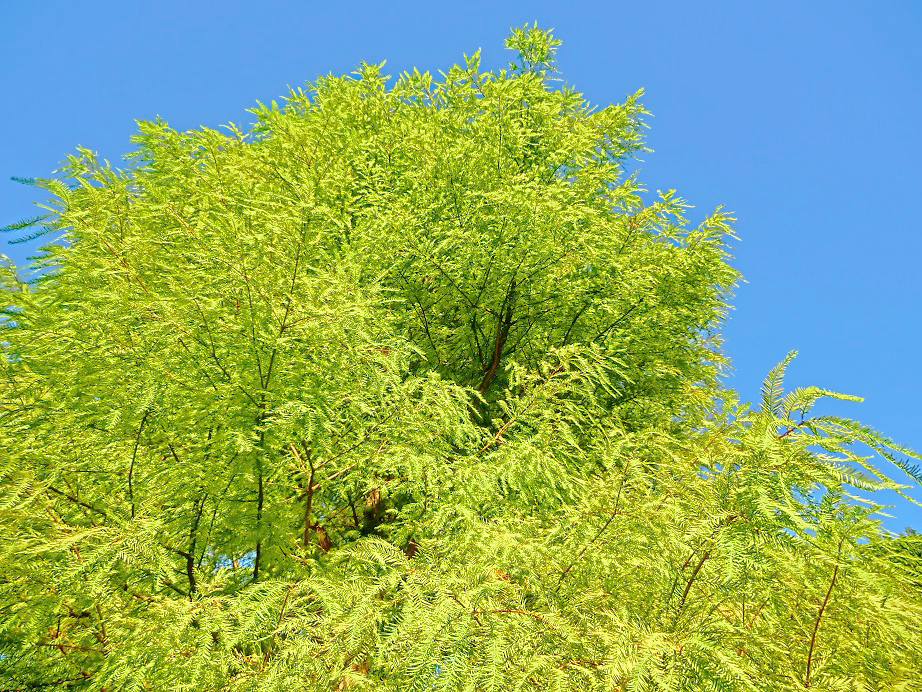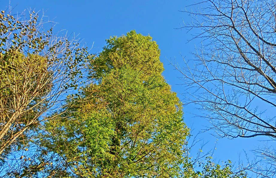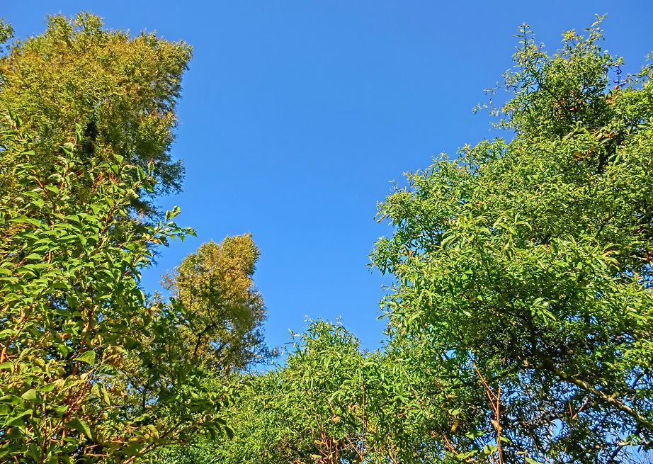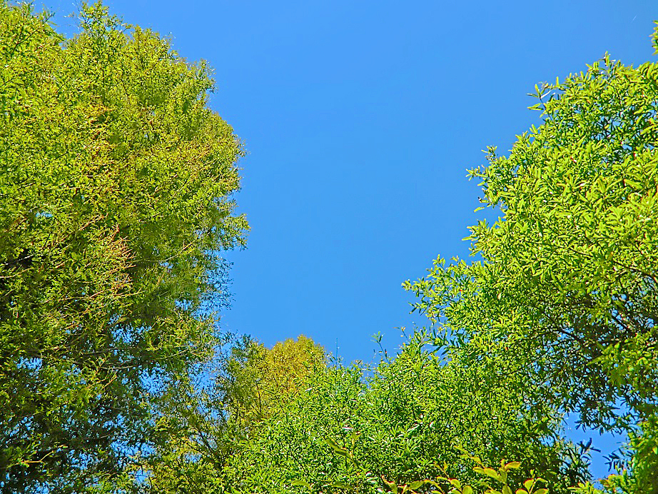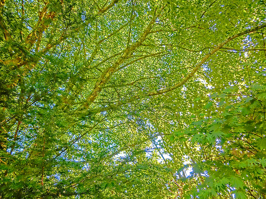 見上げると、青空の手前に、緑の天井が!・・・その美しさに、見とれてしまいます・・・