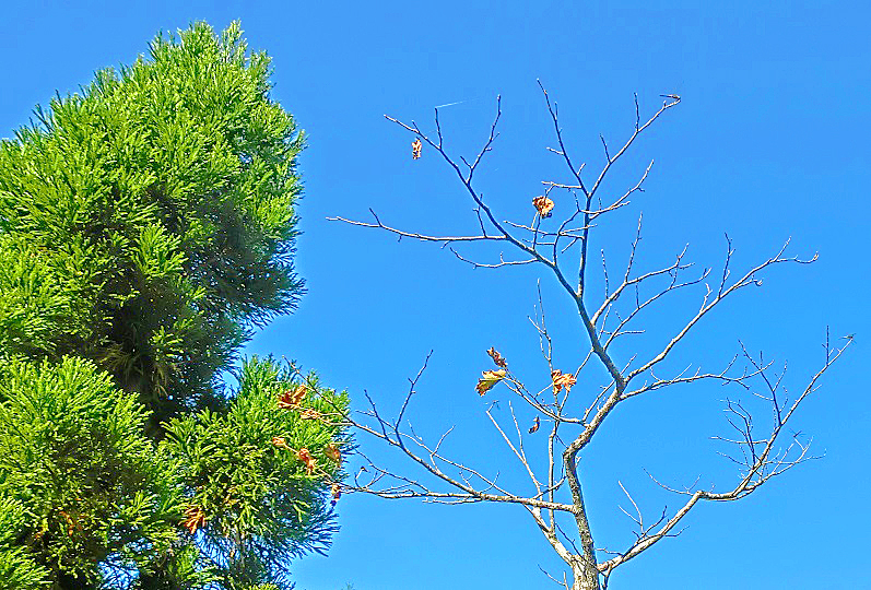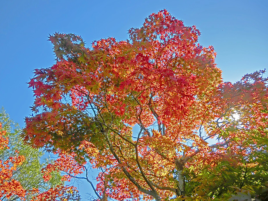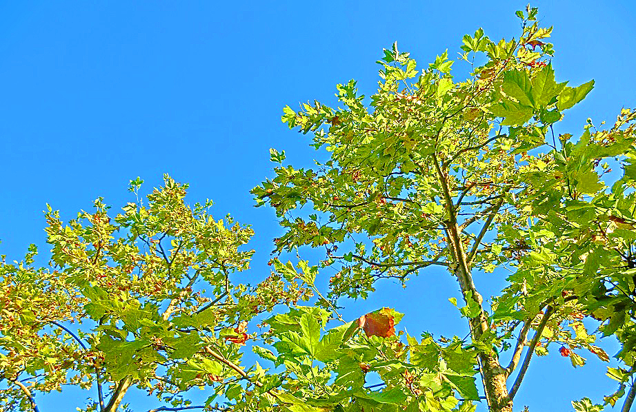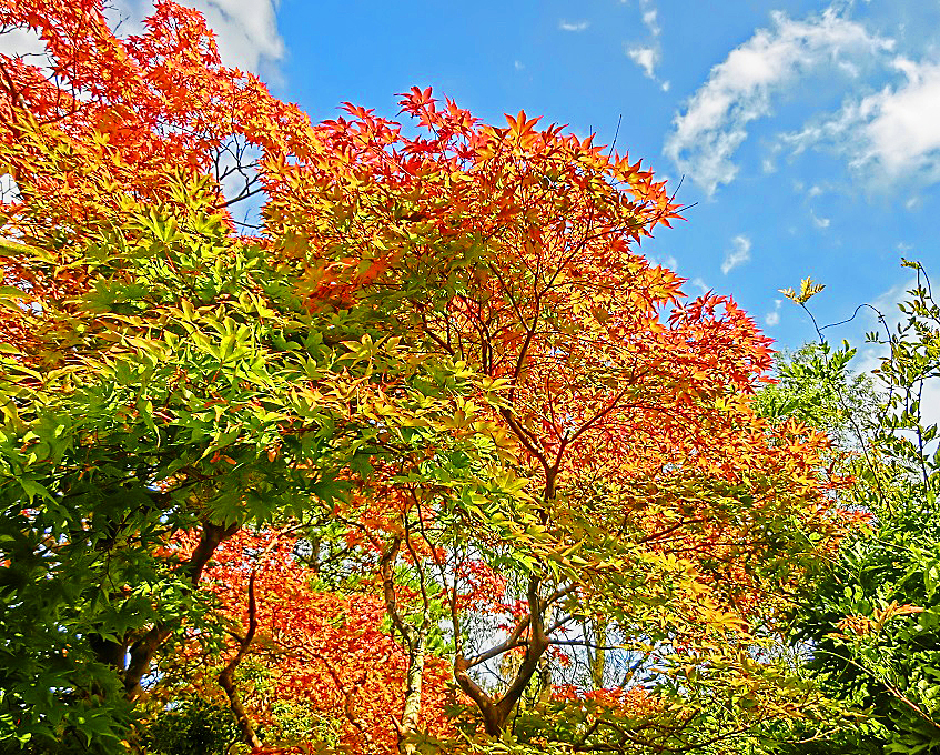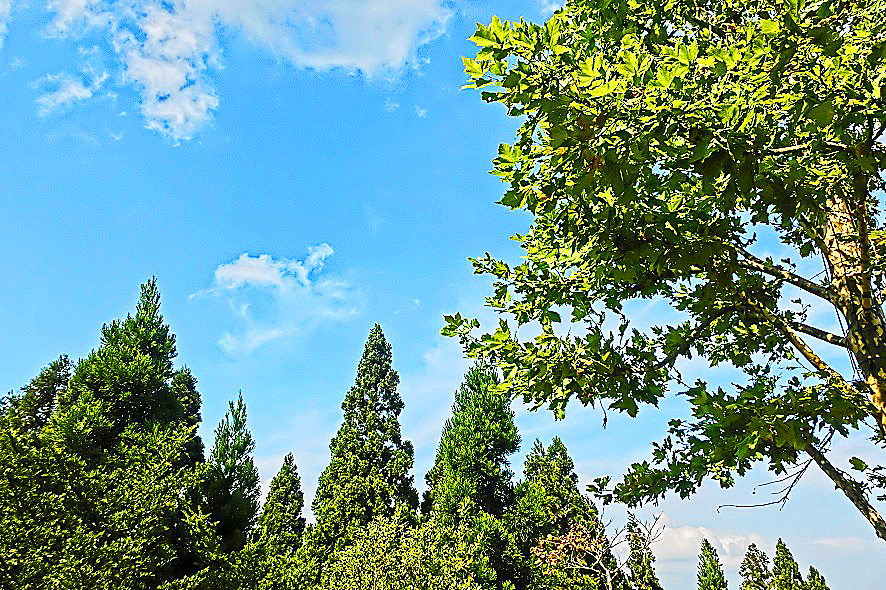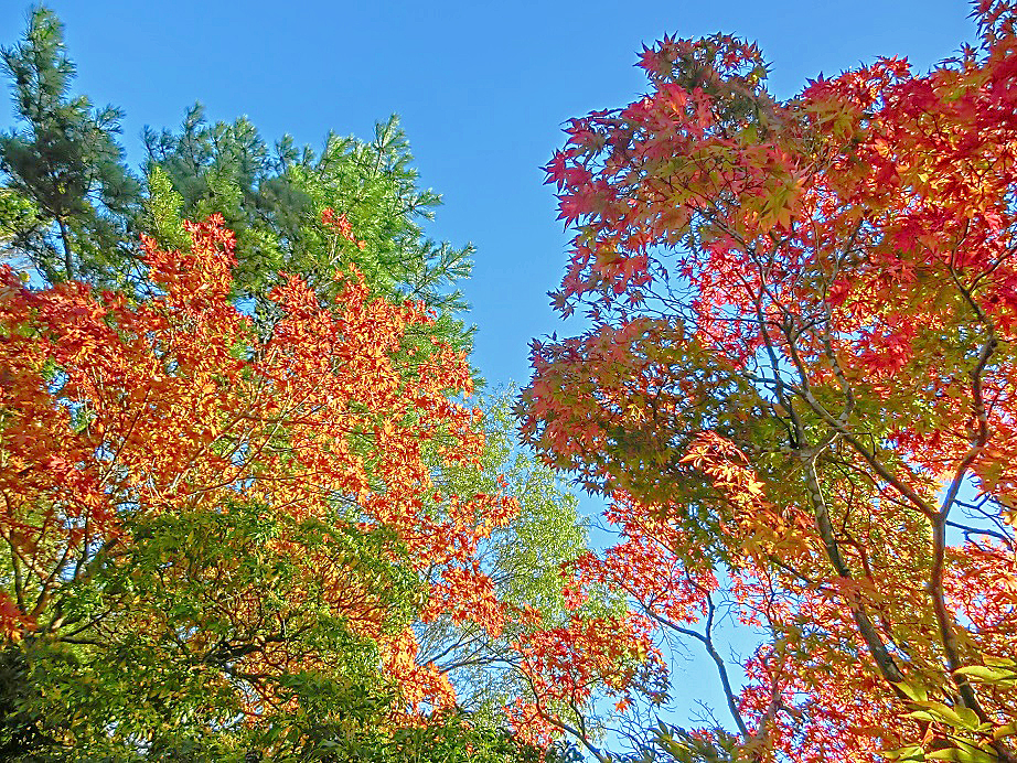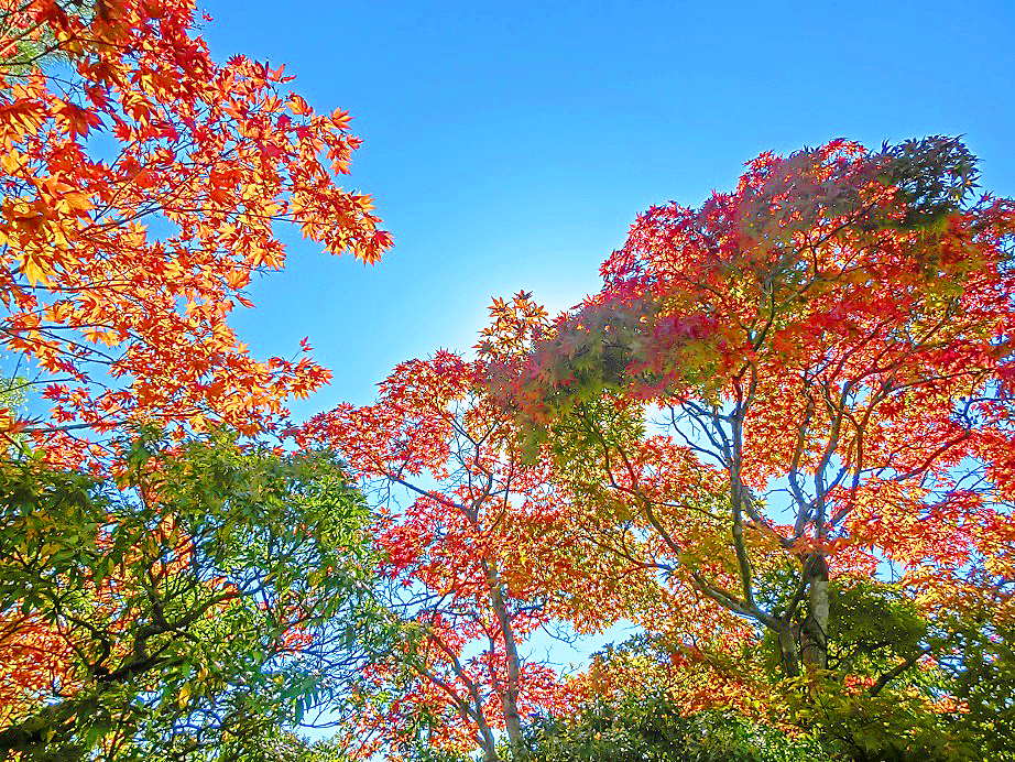見上げると、青空の手前に、緑の天井が!・・・その美しさに、見とれてしまいます・・・