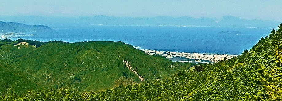比叡山頂から見下ろすと、対岸が見えないほどの広大な琵琶湖を、遠望することができました。